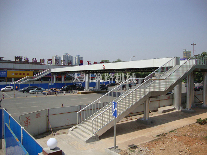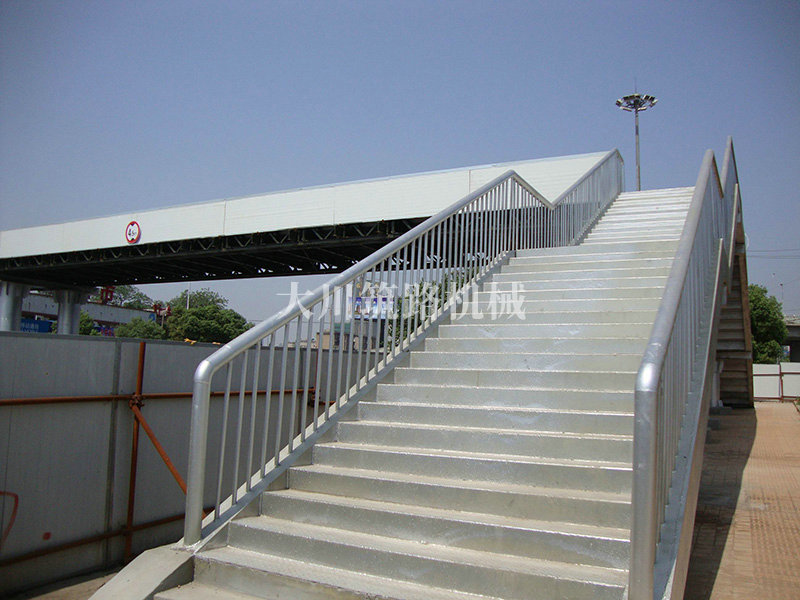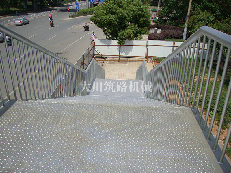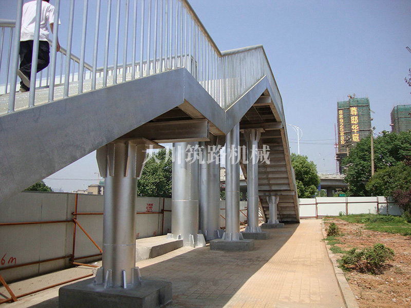 特點:本鋼橋主梁采用標準的“321鋼橋”現(xiàn)場安裝并用朔板包邊,梯道用型鋼、鋼板在廠內加工好現(xiàn)場拼裝,達到安裝便捷、美觀、舒適的要求。本鋼橋安裝工期緊,安裝條件有限,大都只能得用晚間在封鎖交通的情況下安裝。